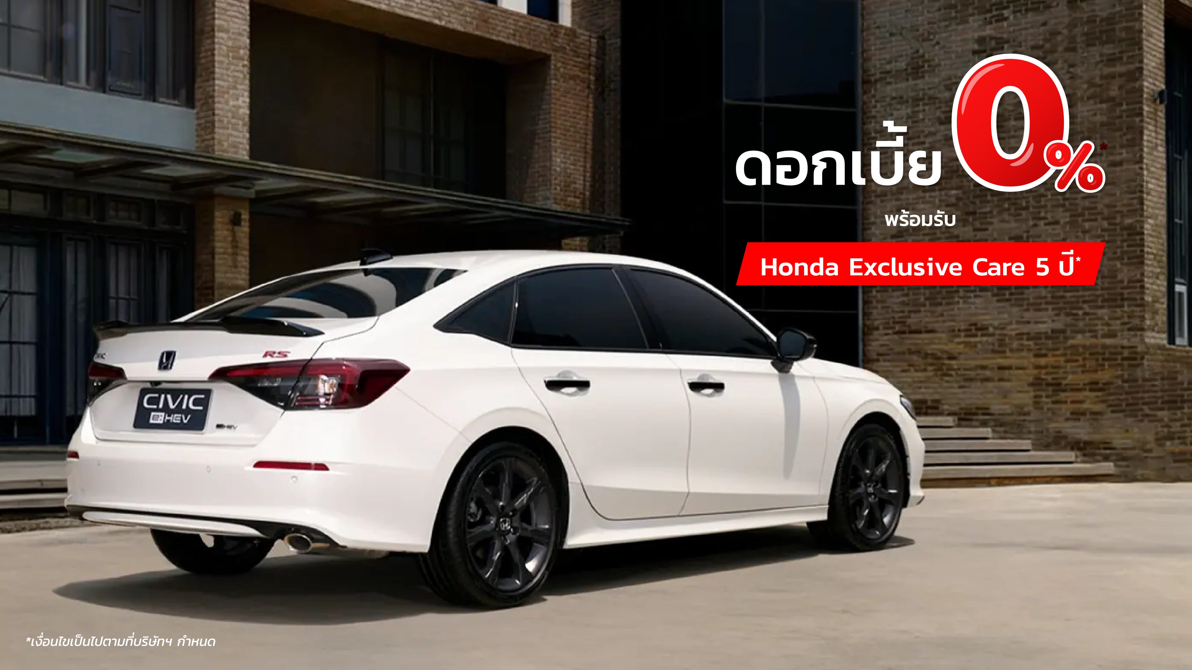 ดอกเบี้ย 0%* พร้อม Honda Exclusive Care 5 ปี*