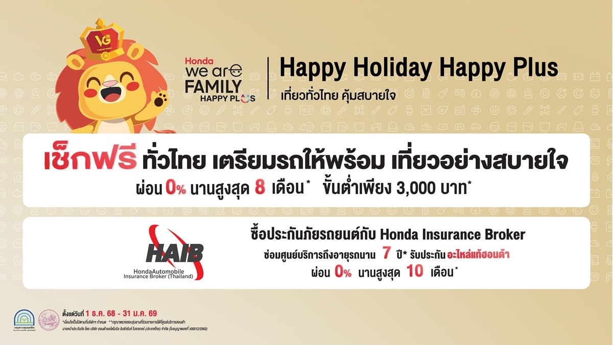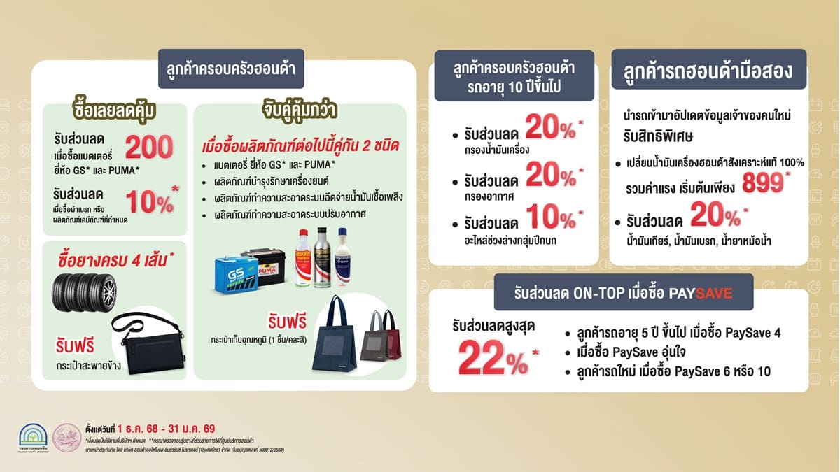 (ตั้งแต่วันที่ 1 ธันวาคม 2568 – 31 มกราคม 2568 *เงื่อนไขเป็นไปตามที่บริษัทฯ กำหนด **กรุณาตรวจสอบรุ่นยางที่ร่วมรายการได้ที่ศูนย์บริการฮอนด้า)