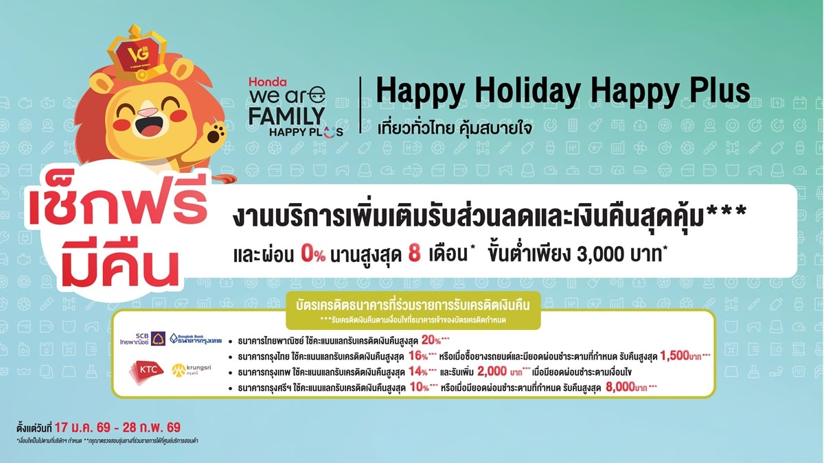 (ตั้งแต่วันที่ 17 มกราคม 2569 – 28 กุมภาพันธ์ 2569 *เงื่อนไขเป็นไปตามที่บริษัทฯ กำหนด **กรุณาตรวจสอบรุ่นยางที่ร่วมรายการได้ที่ศูนย์บริการฮอนด้า)