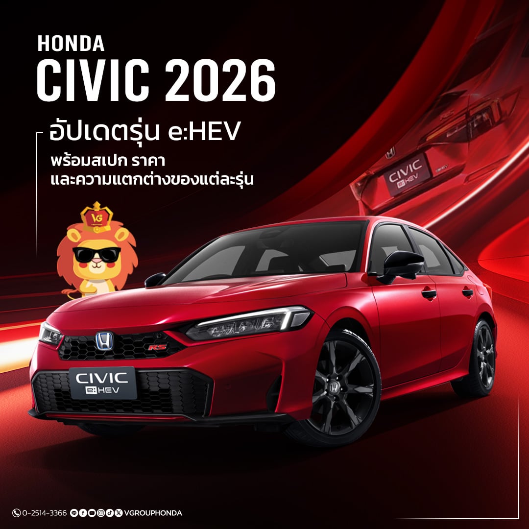 Honda Civic เป็นรถซีดานที่อยู่คู่ตลาดรถยนต์ไทยมาอย่างยาวนาน และยังคงเป็นหนึ่งในรุ่นที่ได้รับความนิยมอย่างต่อเนื่อง ด้วยภาพลักษณ์ที่ดูดี การขับขี่ที่มั่นใจ และคุณภาพงานประกอบตามมาตรฐาน Honda ในปี 2026 Civic ยังคงพัฒนาต่อยอดจากแนวคิดเดิม แต่ปรับทิศทางให้ตอบโจทย์การใช้งานในชีวิตจริงมากขึ้น โดยเฉพาะการเน้น ระบบขับเคลื่อน e:HEV และเทคโนโลยีความปลอดภัยที่เป็นมาตรฐาน